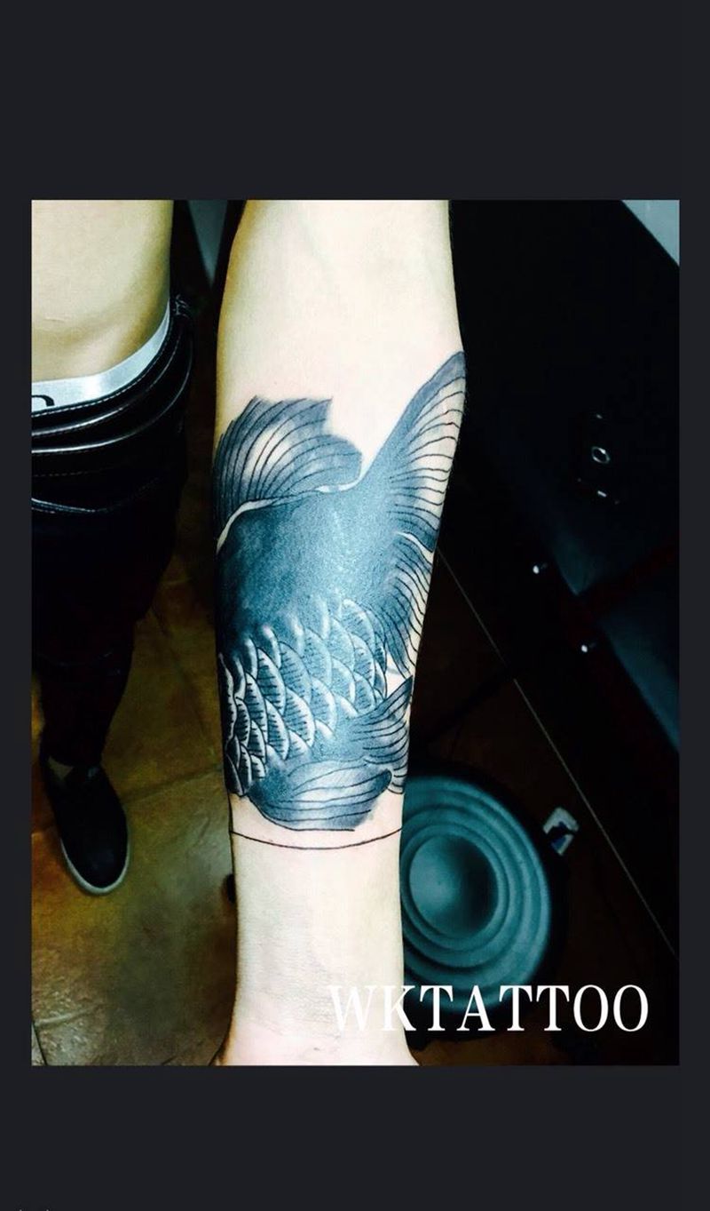 金鱼遮盖图腾纹身图片_成品动物传统手臂纹身图案