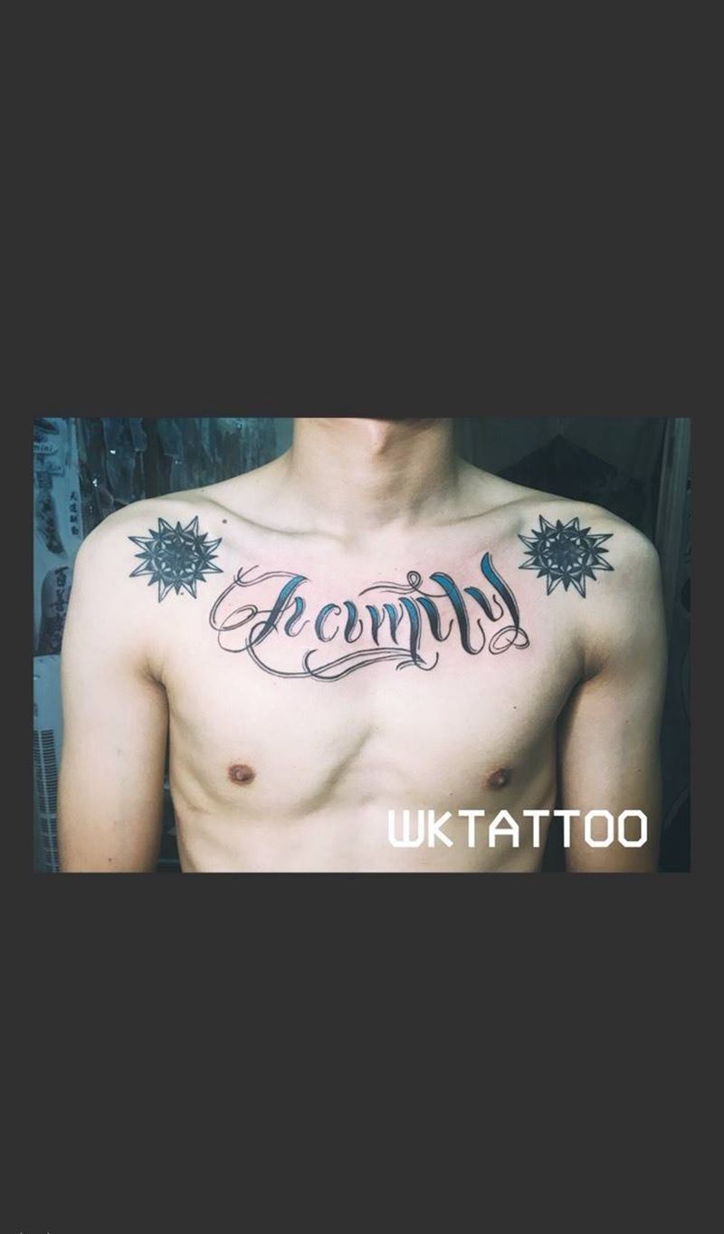 当前位置: 首页 >广东省广州市纹身店-肆海刺青纹身图案>花体英文纹身图片_原创字符欧美胸部成品纹身图案