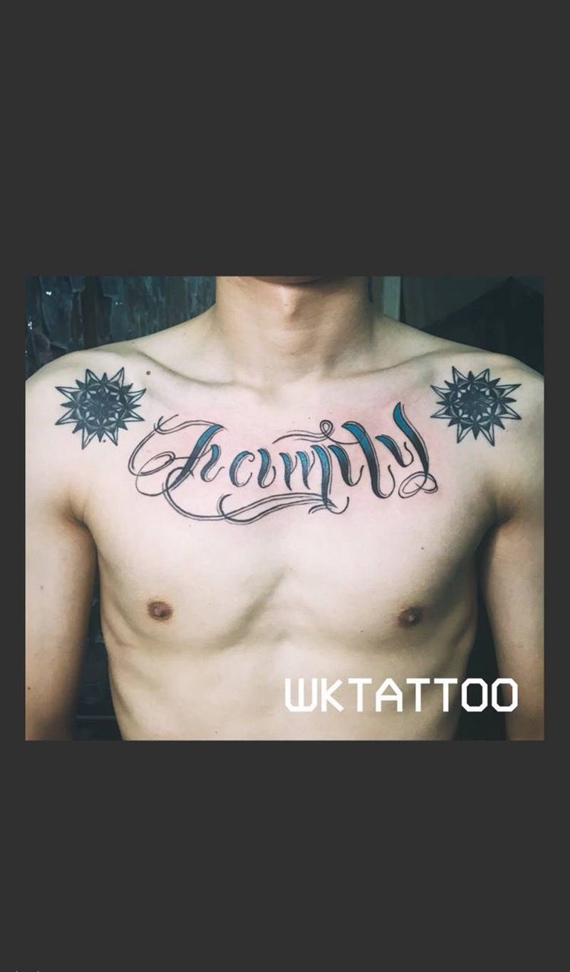当前位置: 首页 >广东省广州市纹身店-肆海刺青纹身图案>花体英文纹身图片_原创字符欧美胸部成品纹身图案