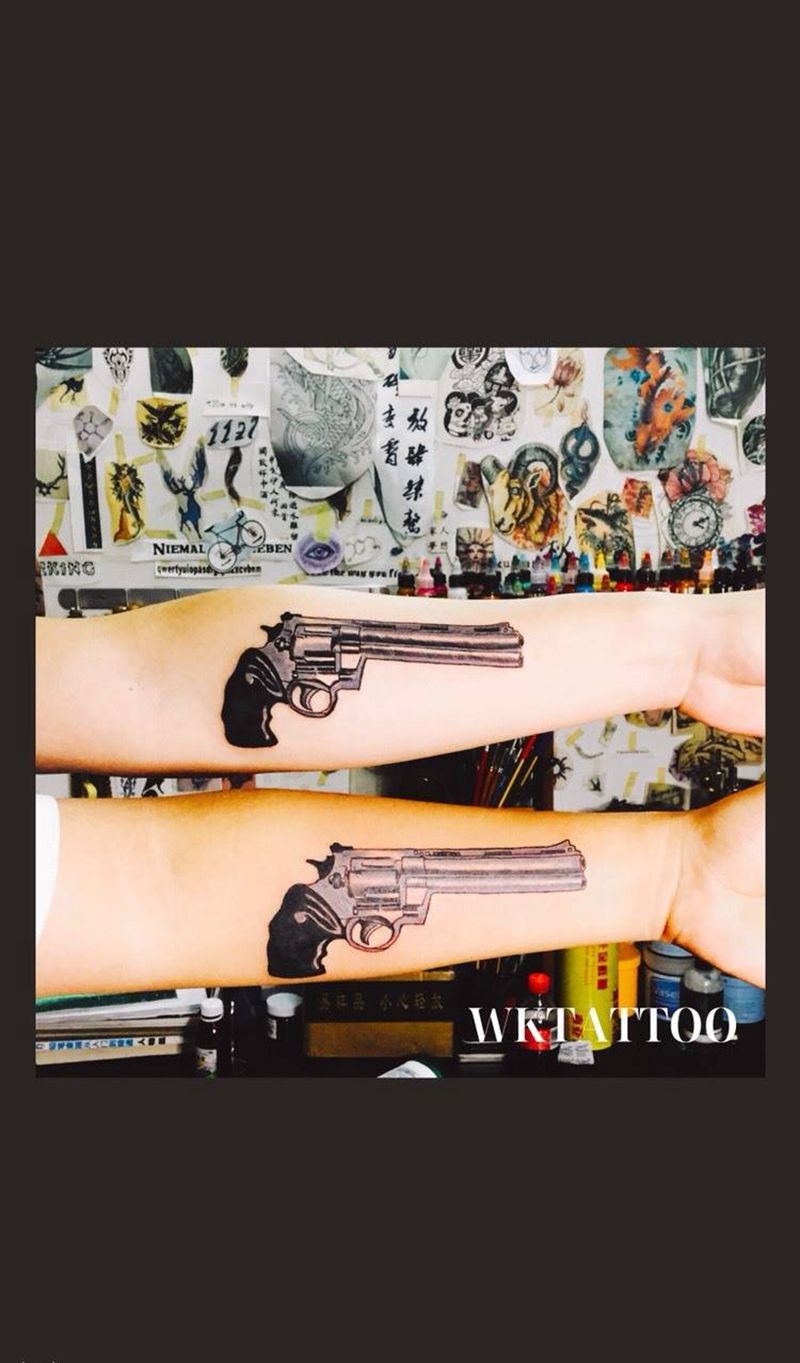 当前位置: 首页 >广东省广州市纹身店-肆海刺青纹身图案>双枪兄弟纹身图片_原创手臂成品欧美纹身图案