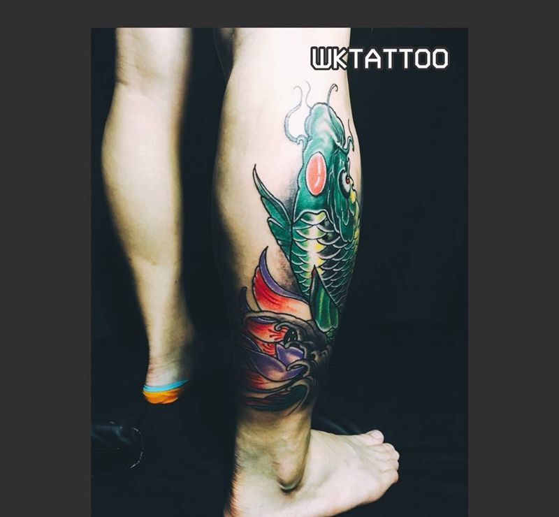 当前位置: 首页 >广东省广州市纹身店-肆海刺青纹身图案>鲤鱼纹身图片_动物传统脚部成品纹身图案