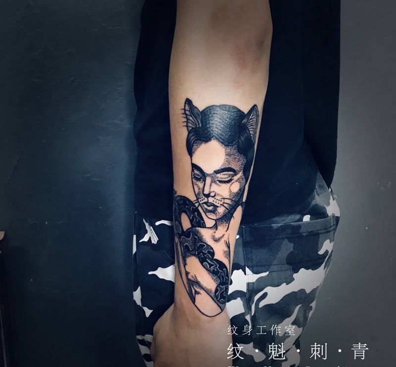 当前位置: 首页 >广东省广州市纹身店-肆海刺青纹身图案>猫女纹身图片_成品人物动物欧美肖像手臂纹身图案
