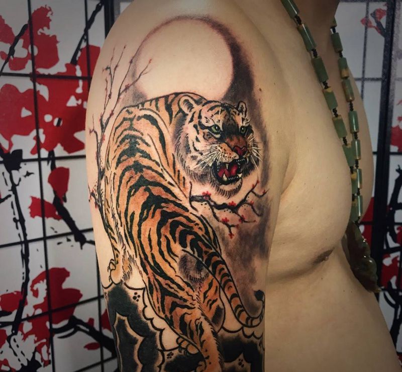 当前位置: 首页 >广东省广州市纹身店-肆海刺青纹身图案>老虎纹身图片_手臂老传统纹身图案
