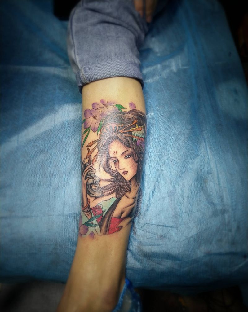 当前位置: 首页 >广东省广州市纹身店-周贰纹身工作室纹身图案>艺伎纹身图片_腿部新传统纹身图案