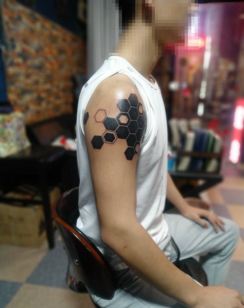 当前位置: 首页 >广东省广州市纹身店-周贰纹身工作室纹身图案>遮盖纹身图片_手臂几何纹身图案