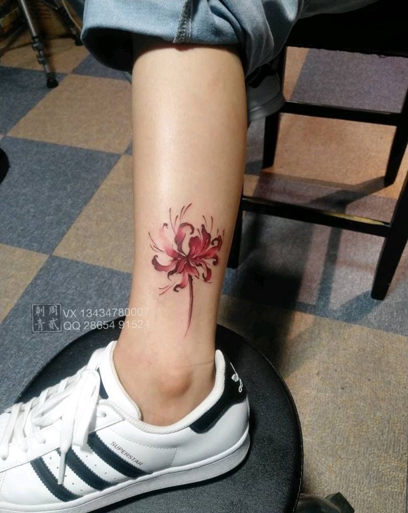 当前位置: 首页 >广东省广州市纹身店-周贰纹身工作室纹身图案>彼岸花纹身图片_腿部纹身图案