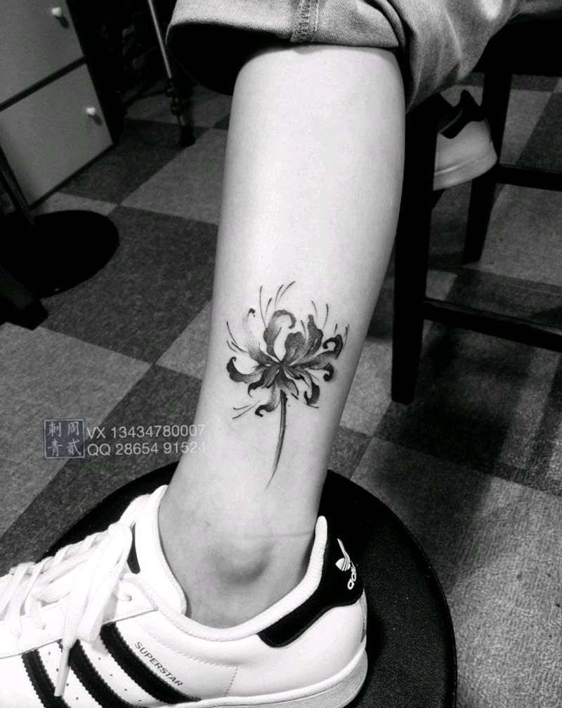 彼岸花纹身图片_腿部纹身图案