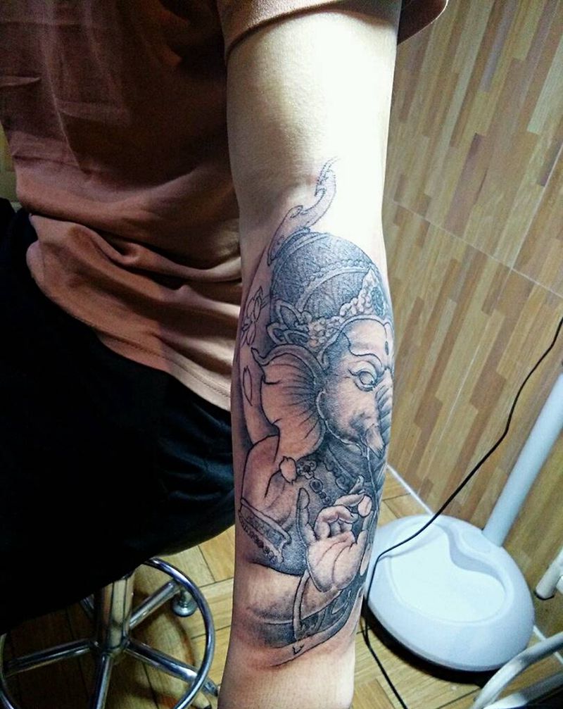 当前位置: 首页 >广东省广州市纹身店-周贰纹身工作室纹身图案>象神纹身图片_手臂鬼神纹身图案