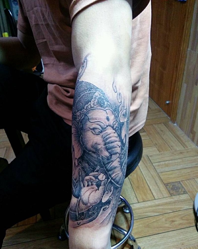 当前位置: 首页 >广东省广州市纹身店-周贰纹身工作室纹身图案>象神纹身图片_手臂鬼神纹身图案