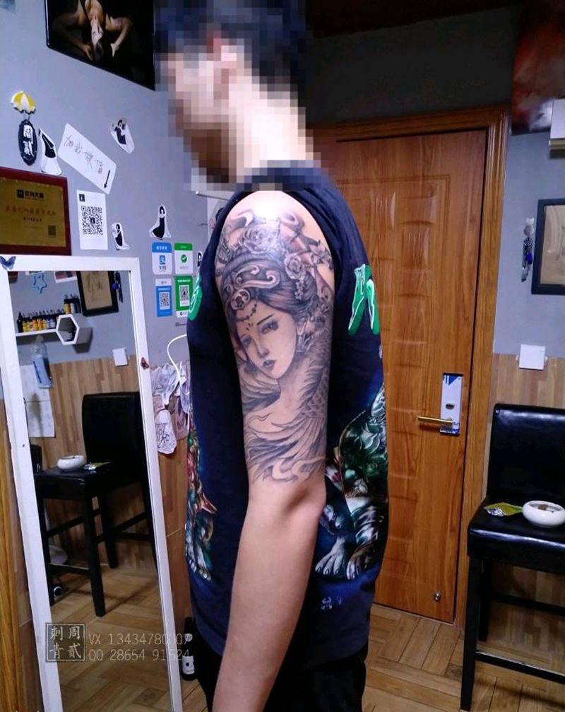 当前位置: 首页 >广东省广州市纹身店-周贰纹身工作室纹身图案>艺伎纹身图片_手臂新传统纹身图案