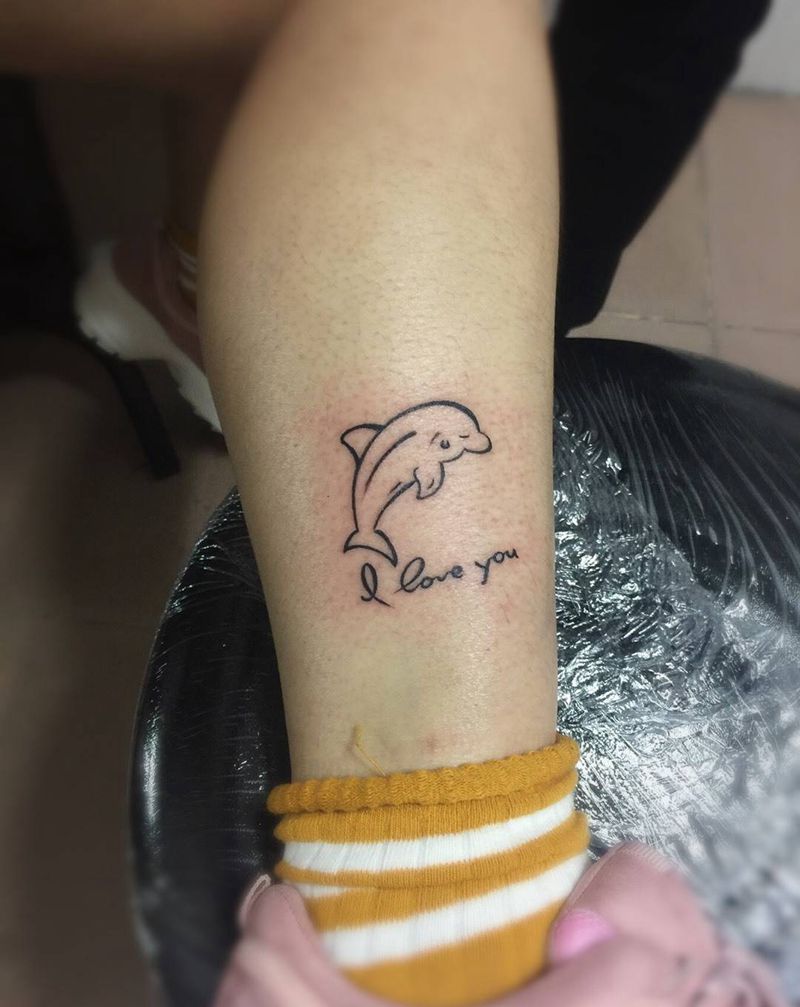 当前位置: 首页 >广东省广州市纹身店-金刺青纹身图案>小清新 海豚纹身图片_成品腿部脚部清新动物图腾纹身图案