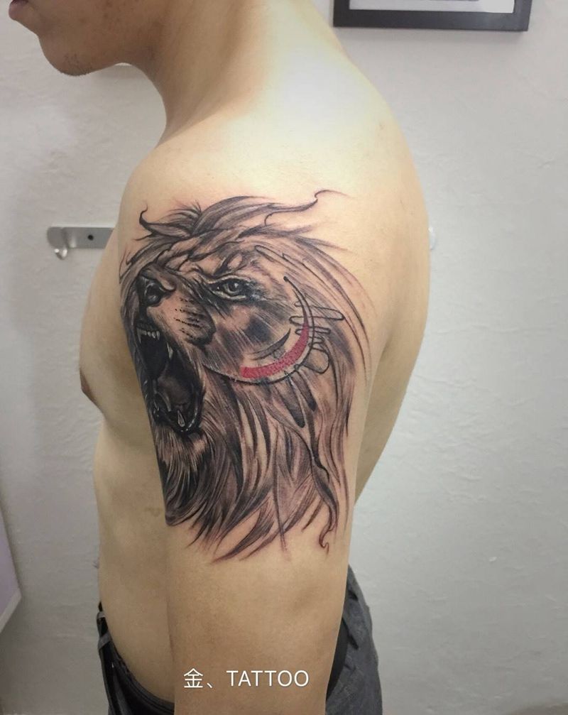 当前位置: 首页 >广东省广州市纹身店-金刺青纹身图案>狮子纹身图片_成品手臂手部欧美动物几何图腾纹身图案