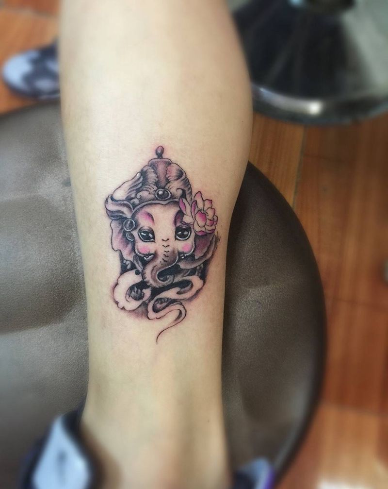 象神纹身图片_成品脚部腿部传统清新动物人物鬼神纹身图案