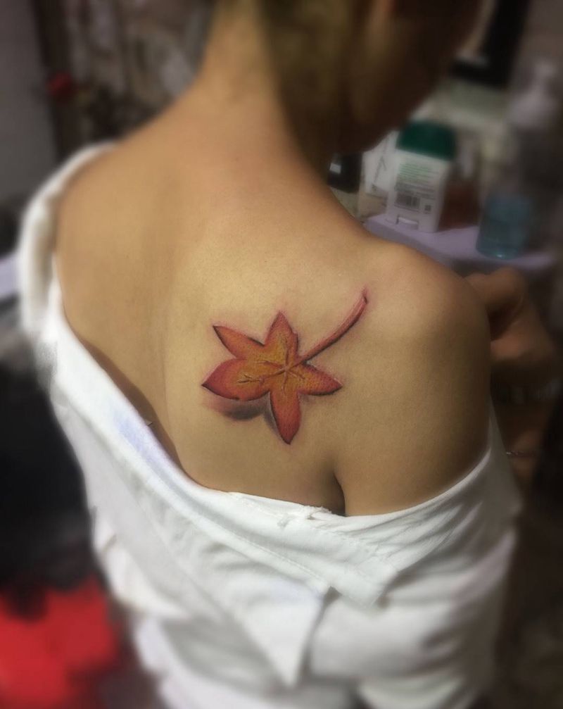 当前位置: 首页 >广东省广州市纹身店-金刺青纹身图案>枫叶纹身图片_成品肩部颈部背部欧美传统清新静物植物纹身图案