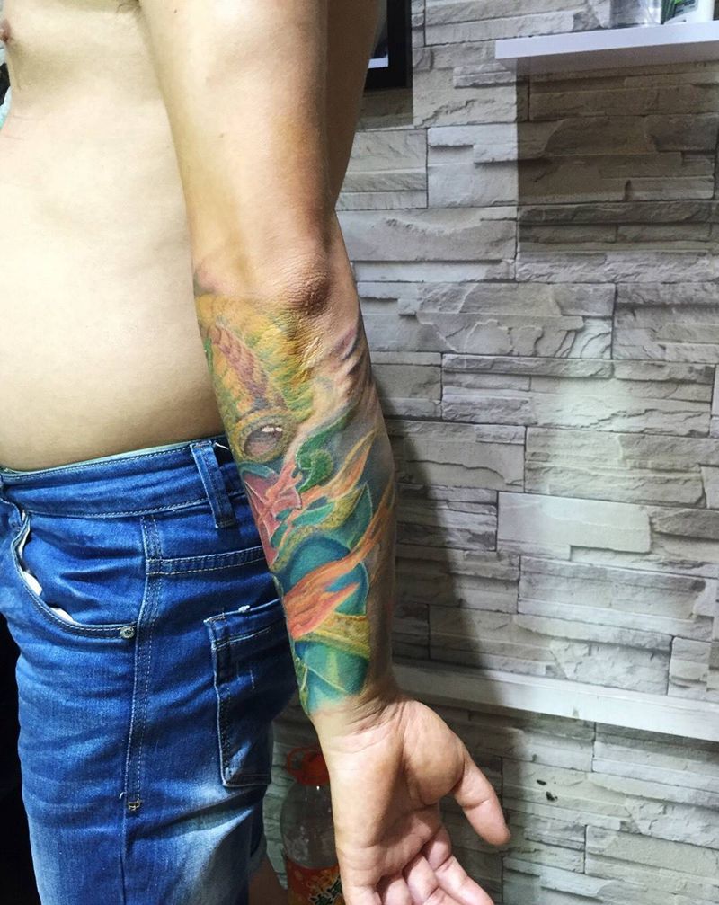 当前位置: 首页 >广东省广州市纹身店-金刺青纹身图案>象神纹身图片_成品手臂手部传统人物鬼神宗教纹身图案