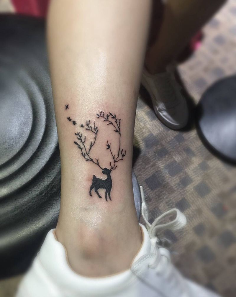 鹿纹身图片_成品腿部脚部欧美传统清新几何动物图腾纹身图案