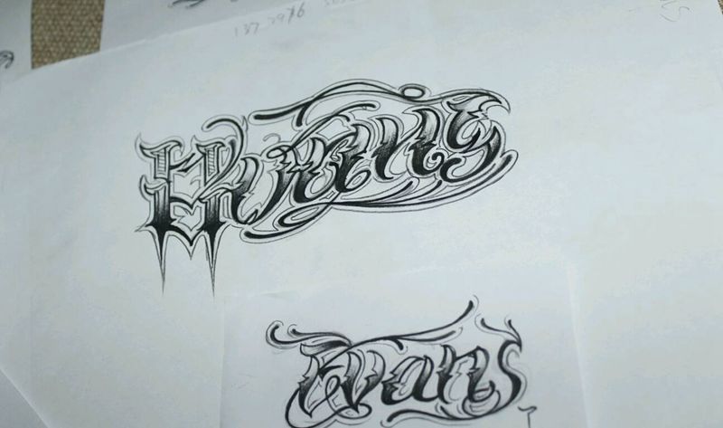 Evans纹身图片_腰部欧美字符原创唐日英LIFE成品手稿纹身图案