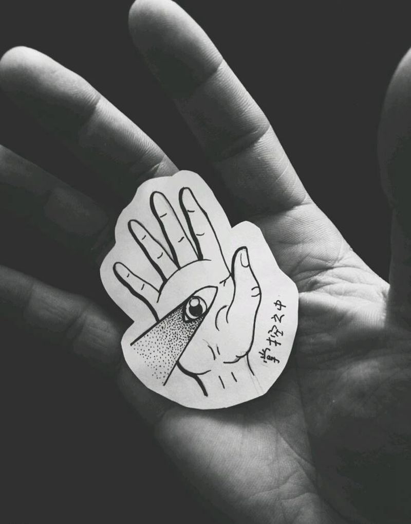 • 手背潮流时尚的玫瑰花眼睛纹身图案