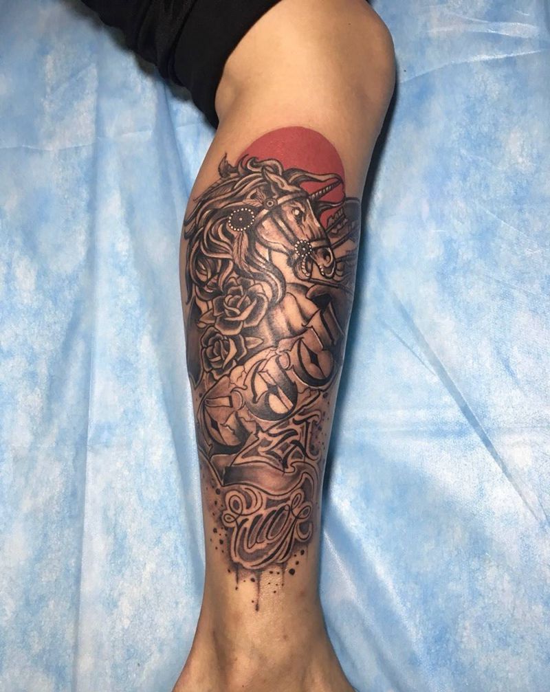 • T网红王老大花腿龙纹身图片_腿部新传统纹身图案