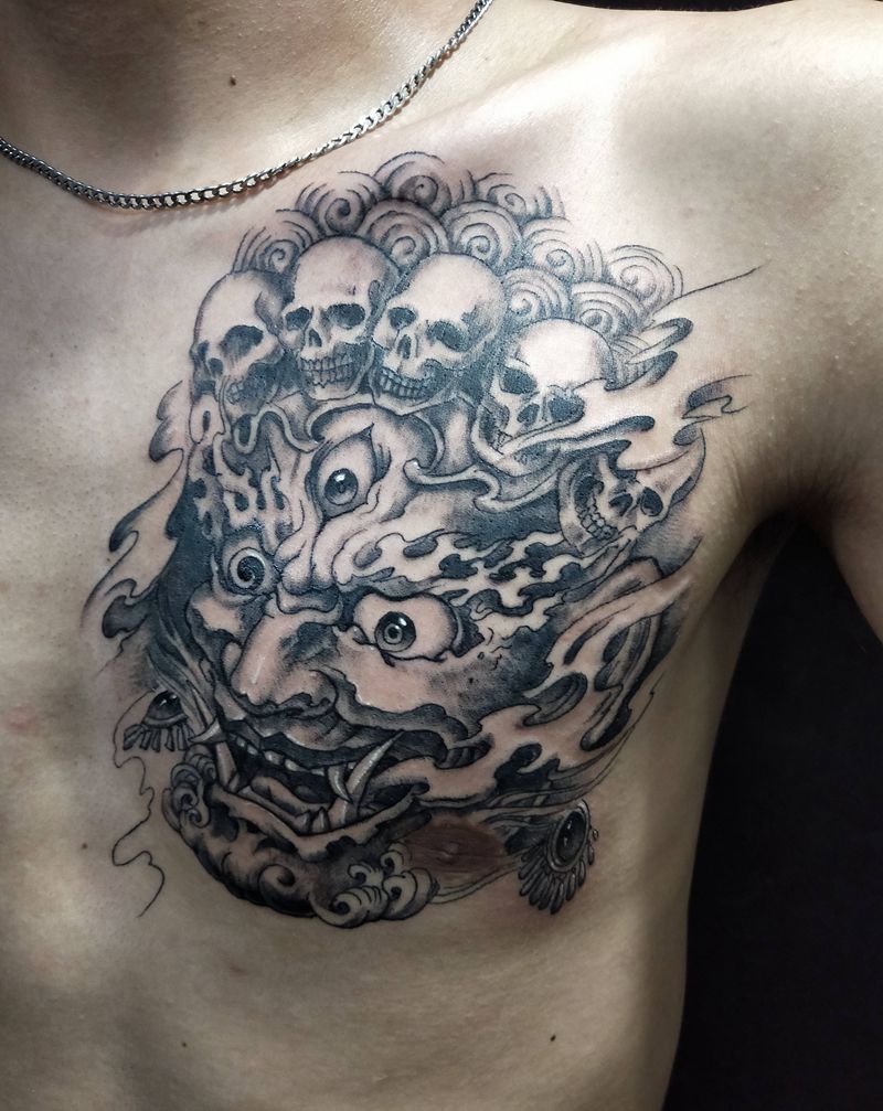 左胸大黑天纹身图片_胸部新传统大黑天胸口纹身图案