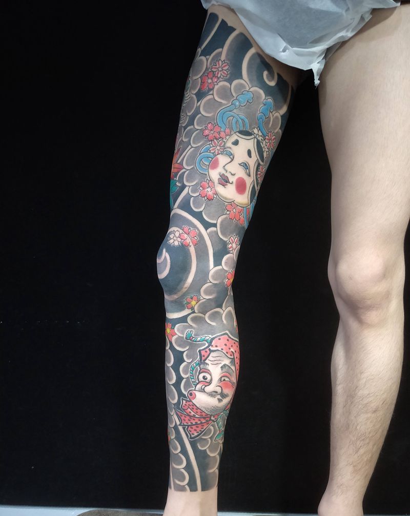 当前位置: 首页 >广东省广州市纹身店-纯针刺青工作室纹身图案>花腿进度纹身图片_腿部老传统纹身图案