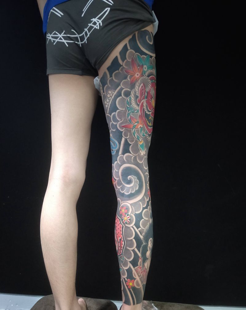 当前位置: 首页 >广东省广州市纹身店-纯针刺青工作室纹身图案>花腿进度纹身图片_腿部老传统纹身图案
