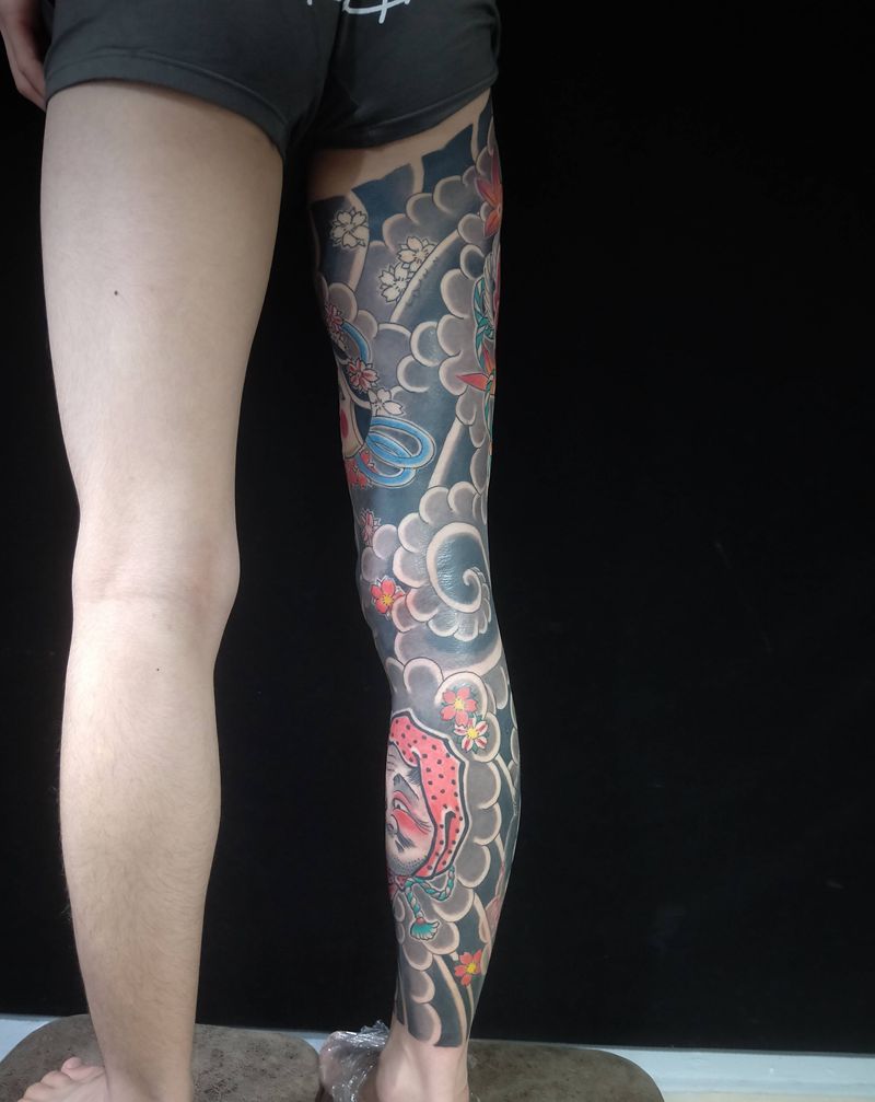 当前位置: 首页 >广东省广州市纹身店-纯针刺青工作室纹身图案>花腿进度纹身图片_腿部老传统纹身图案
