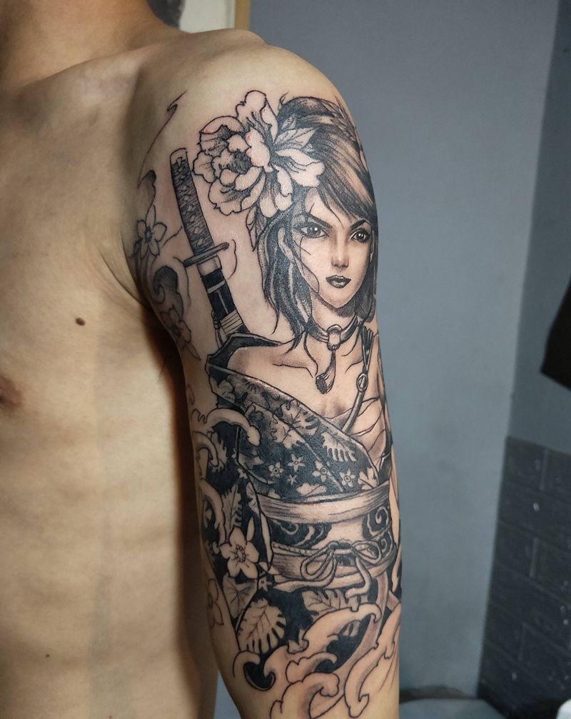 当前位置: 首页 >广东省广州市纹身店-纯针刺青工作室纹身图案>大臂女武士纹身图片_手臂新传统女武士艺伎艺妓纹身图案