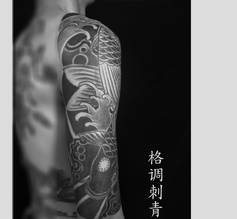当前位置: 首页 >广东省广州市纹身店-纯针刺青工作室纹身图案>日式鲤鱼半甲纹身图片_手臂胸部老传统半甲鲤鱼日式老传统纹身图案