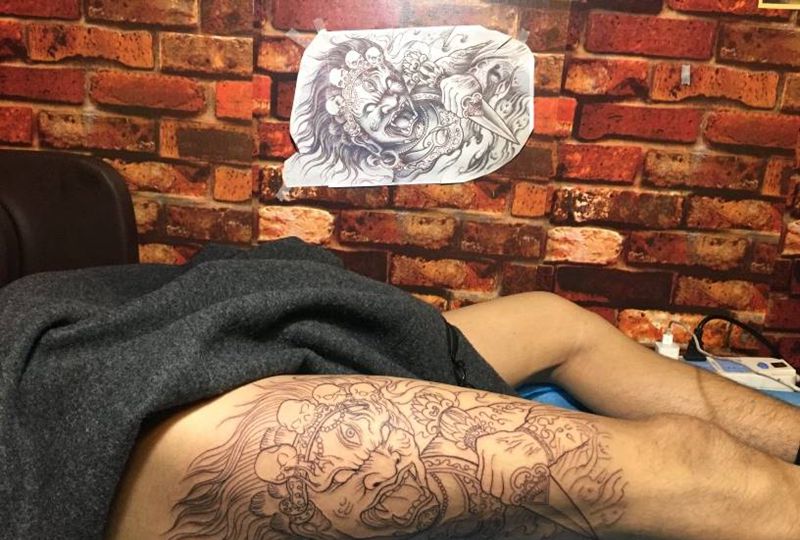 当前位置: 首页 >广东省广州市纹身店-纯针刺青工作室纹身图案>大腿大黑天线条纹身图片_腿部新传统大黑天线条纹身图案