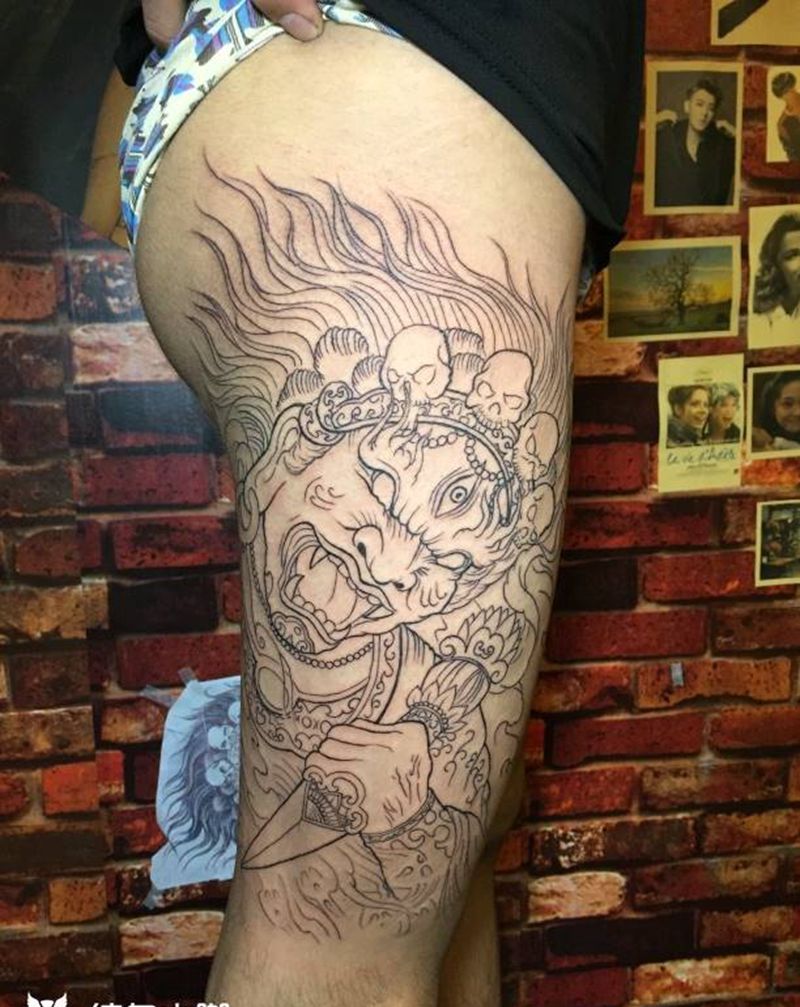 当前位置: 首页 >广东省广州市纹身店-纯针刺青工作室纹身图案>大腿大黑天线条纹身图片_腿部新传统大黑天线条纹身图案