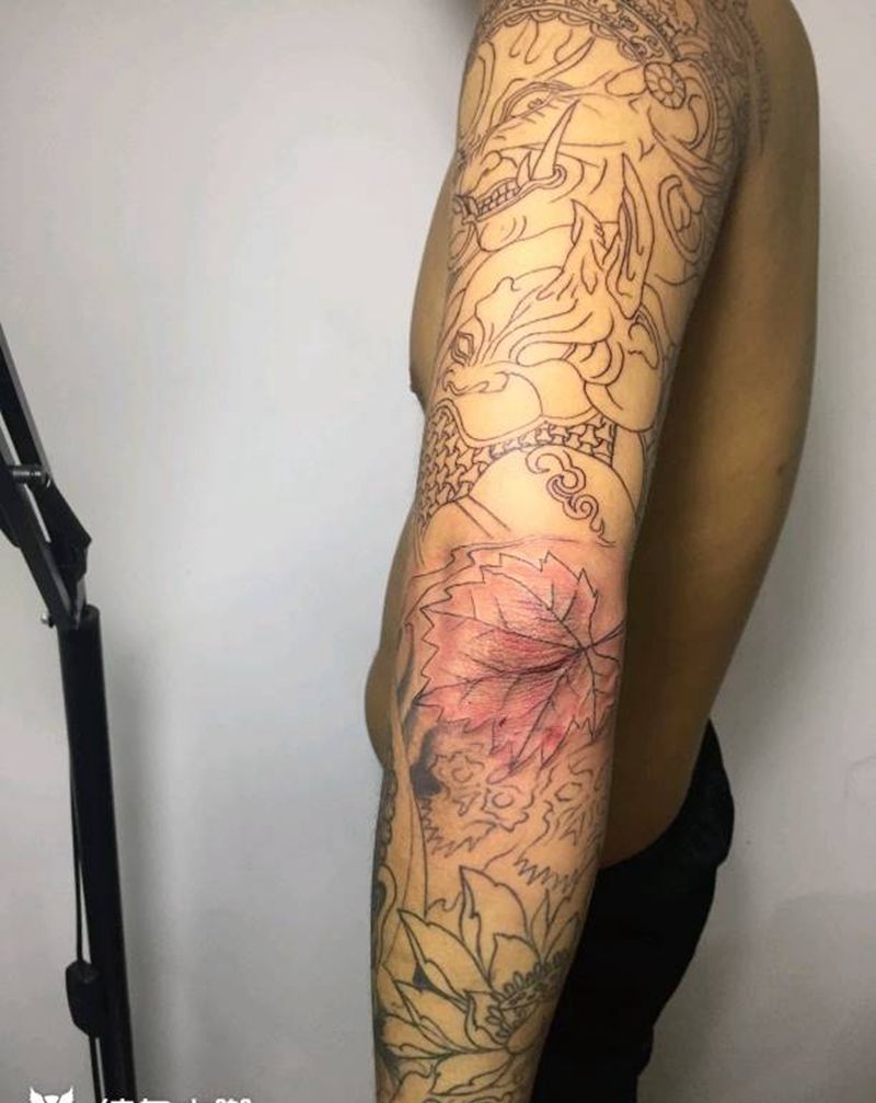 • T网红王老大花腿龙纹身图片_腿部新传统纹身图案