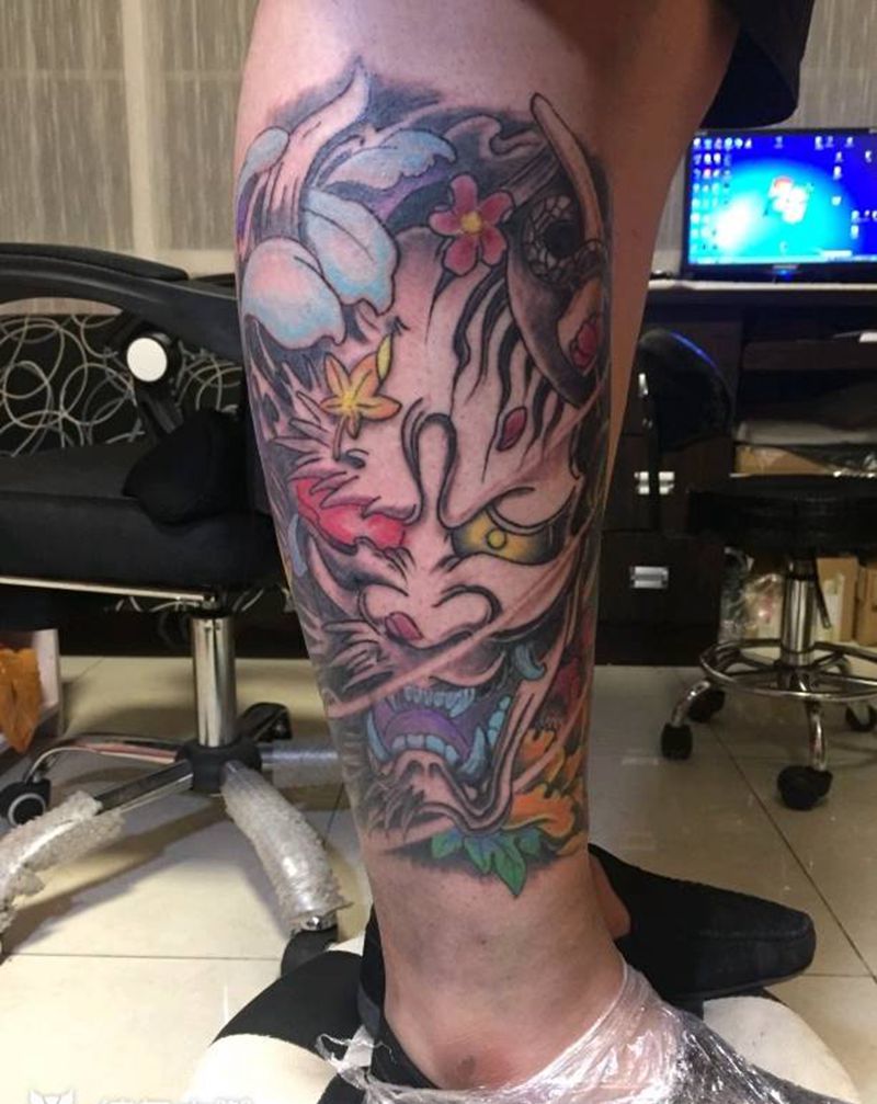当前位置: 首页 >广东省广州市纹身店-纯针刺青工作室纹身图案>善恶般若纹身图片_腿部新传统纹身图案
