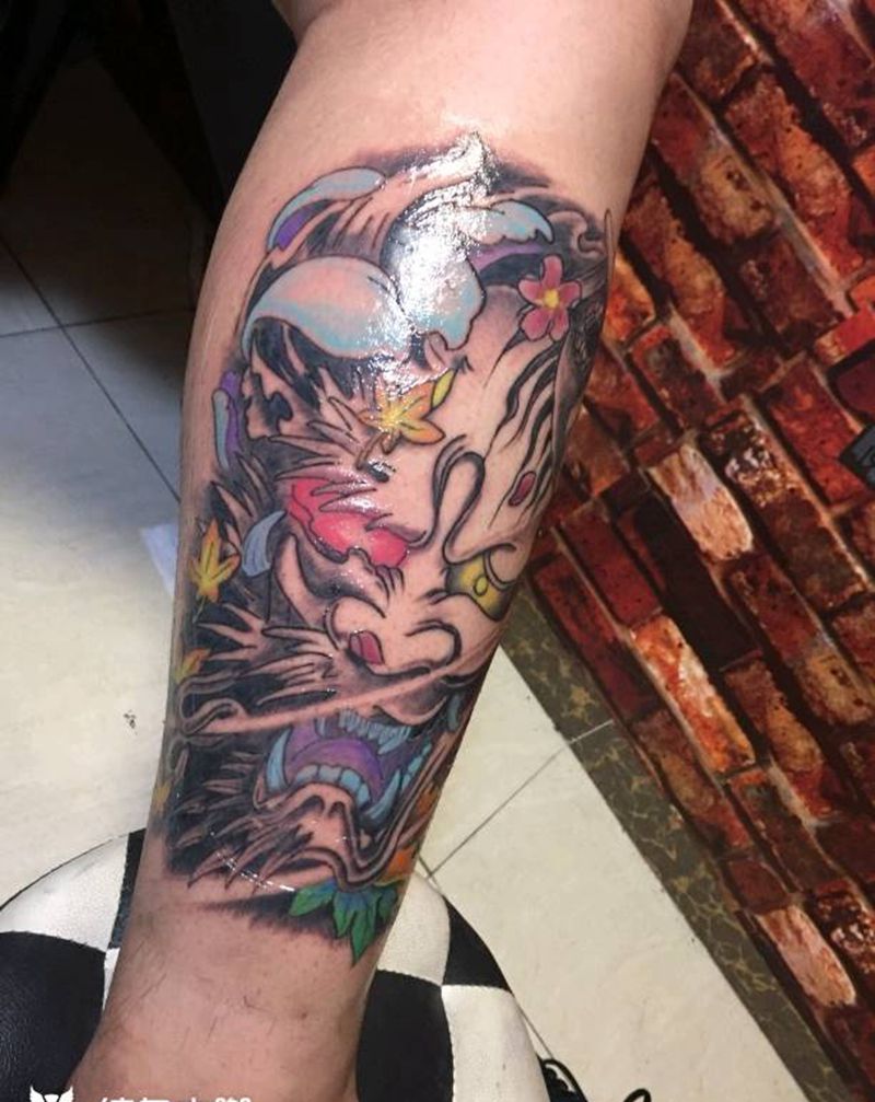 • T网红王老大花腿龙纹身图片_腿部新传统纹身图案