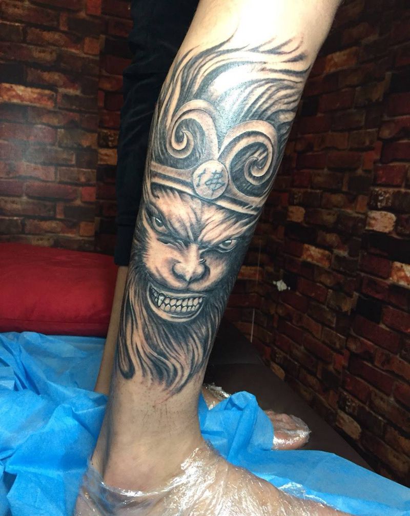 当前位置: 首页 >广东省广州市纹身店-纯针刺青工作室纹身图案>小腿猴子纹身图片_腿部新传统孙悟空猴子纹身图案
