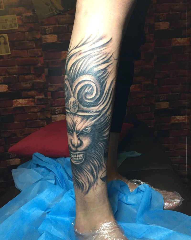 当前位置: 首页 >广东省广州市纹身店-纯针刺青工作室纹身图案>小腿猴子纹身图片_腿部新传统孙悟空猴子纹身图案