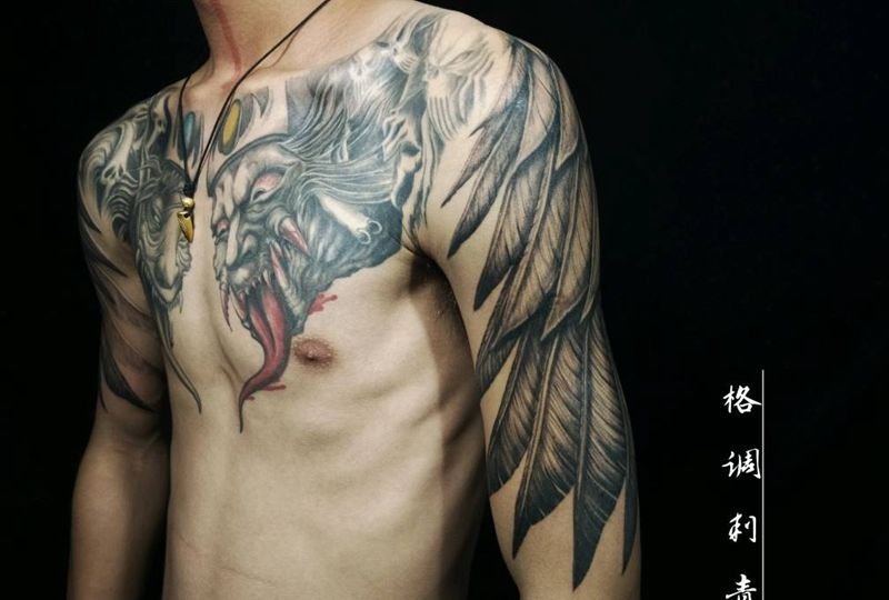 • 纹身吧推荐的披肩图腾半胛纹身图案作品展示