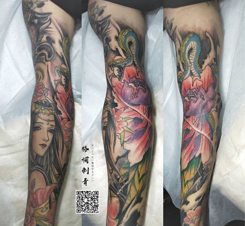 当前位置: 首页 >广东省广州市纹身店-纯针刺青工作室纹身图案>修改艺伎包花臂纹身图片_手臂新传统艺伎牡丹蛇纹身图案