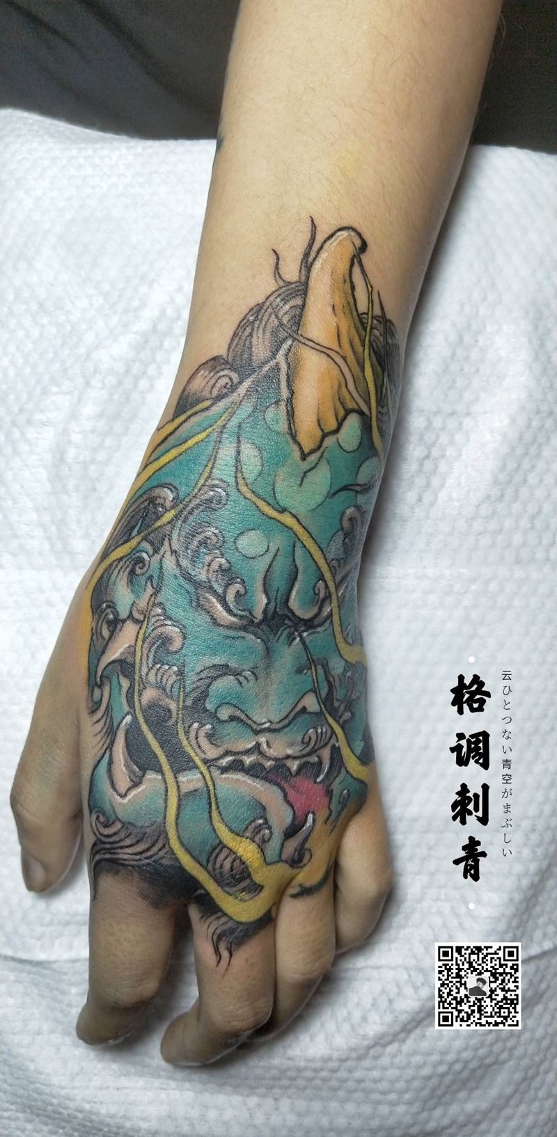 貔貅Ⅱ纹身图片_手部新传统手背貔貅彩色纹身图案