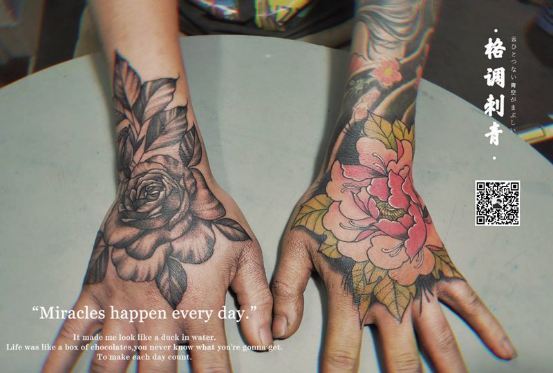 当前位置: 首页 >广东省广州市纹身店-纯针刺青工作室纹身图案>双手背纹身图片_手部老传统点刺玫瑰牡丹纹身图案