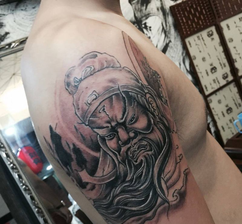 当前位置: 首页 >广东省广州市纹身店-東刺青纹身工作室纹身图案>关羽字云长纹身图片