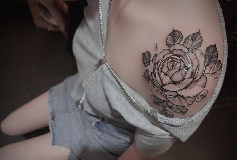 • 女性大花胸纹身_43张霸气漂亮的女性大花胸纹身图案作品