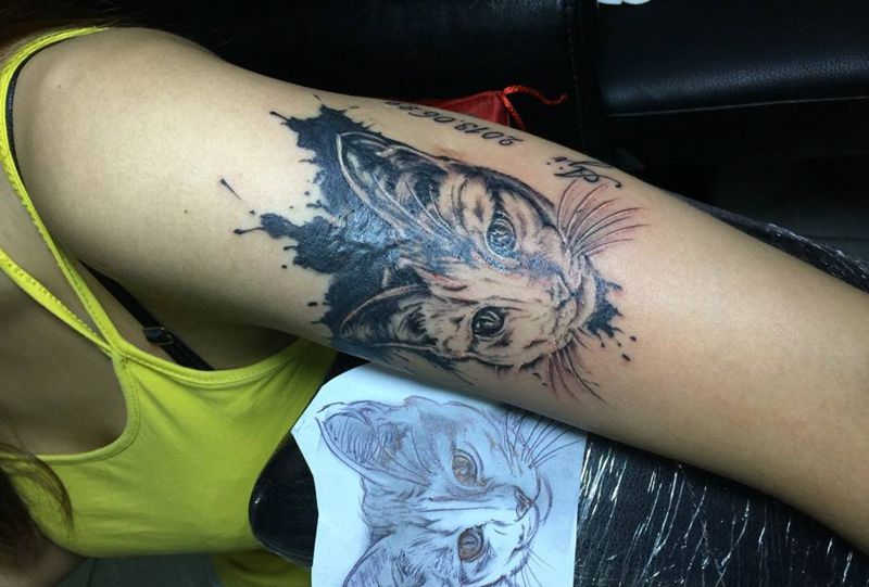 当前位置: 首页 >广东省广州市纹身店-東刺青纹身工作室纹身图案>遮盖写实猫纹身图片