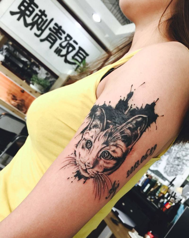 当前位置: 首页 >广东省广州市纹身店-東刺青纹身工作室纹身图案>遮盖写实猫纹身图片