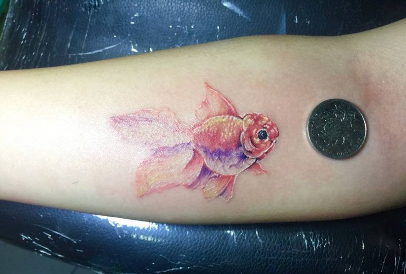 当前位置: 首页 >广东省广州市纹身店-東刺青纹身工作室纹身图案>一条小金鱼纹身图片