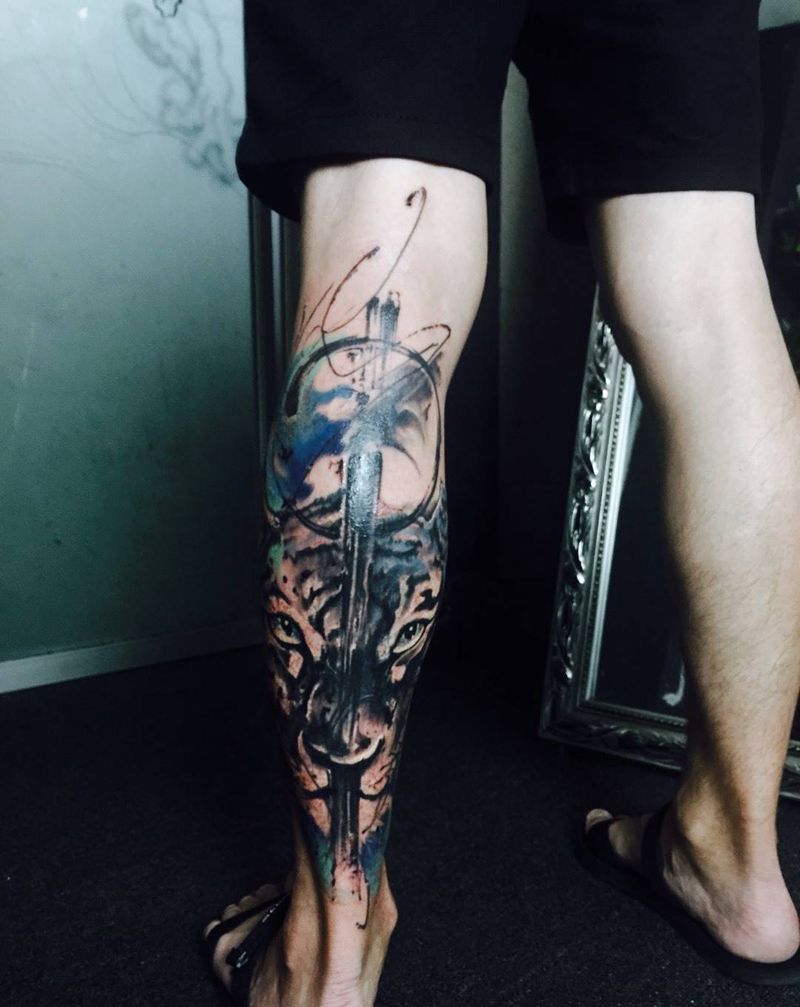 • T网红王老大花腿龙纹身图片_腿部新传统纹身图案