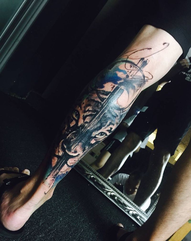 • T网红王老大花腿龙纹身图片_腿部新传统纹身图案