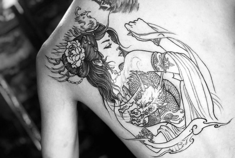 当前位置: 首页 >广东省广州市纹身店-東刺青纹身工作室纹身图案>线条艺妓纹身图片