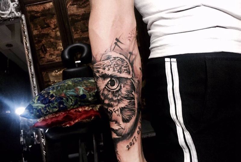 当前位置: 首页 >广东省广州市纹身店-東刺青纹身工作室纹身图案>2小时~写实猫头鹰纹身图片