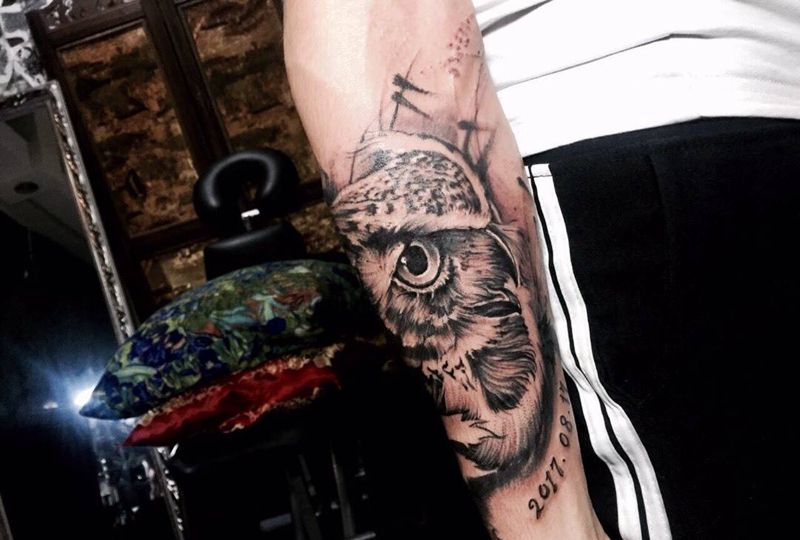 当前位置: 首页 >广东省广州市纹身店-東刺青纹身工作室纹身图案>2小时~写实猫头鹰纹身图片